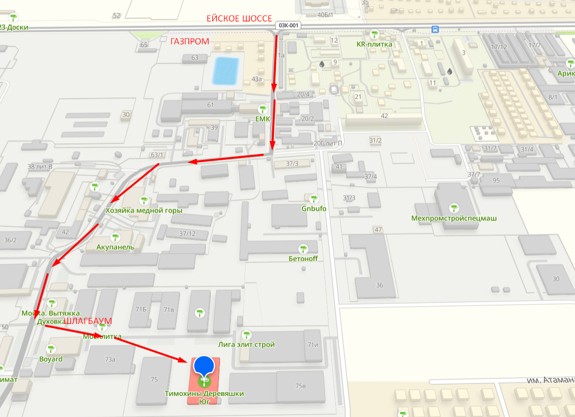 - Фактический адрес: Улица Скульптора Коломойцева, 75а, 3/1 складское помещение, Лекраспром пос., Прикубанский округ, пос. Березовый, Краснодар